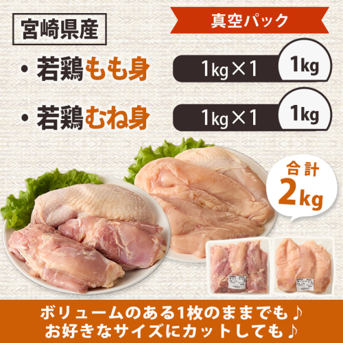 宮崎県産若鶏もも身&むね身2kgセット_AA-M601 2313571 - 宮崎県都城市