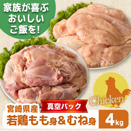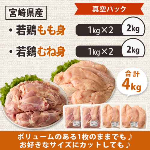 宮崎県産若鶏もも身&むね身4kgセット_13-M602 2313645 - 宮崎県都城市