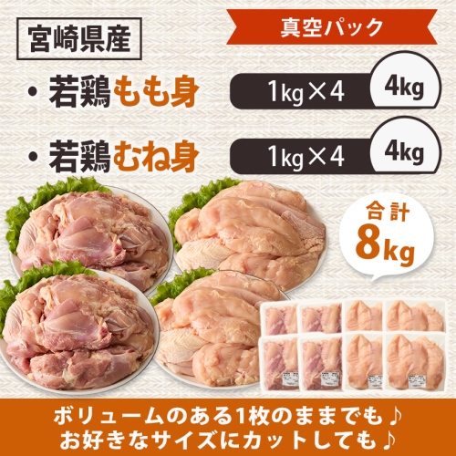 宮崎県産若鶏もも身&むね身8kgセット_26-M602