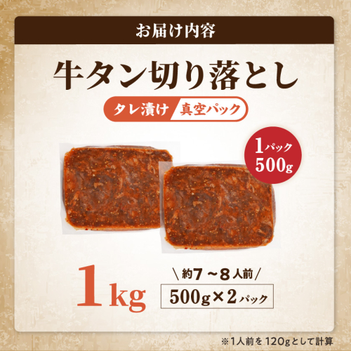 ・牛タン切り落としタレ漬け 500g×2P(真空)