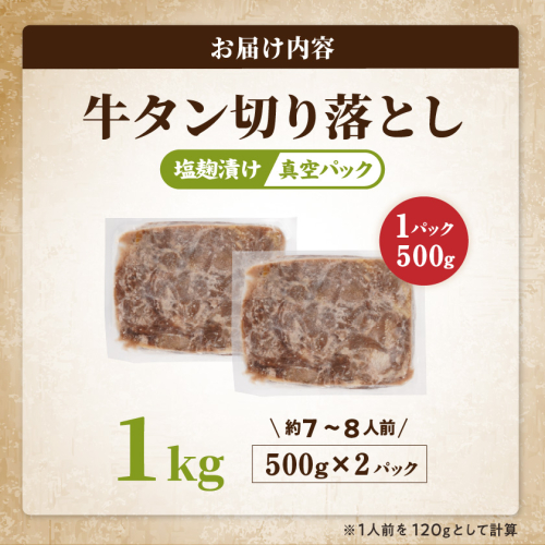 牛タン切り落とし 塩麹タレ漬け1kg≪みやこんじょ特急便≫_12-3316-Q