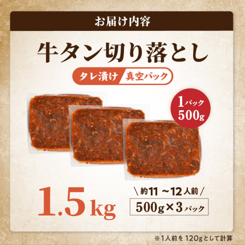 ・牛タン切り落としタレ漬け 500g×3P(真空)