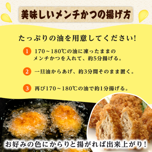 鹿児島黒豚100%。黒豚の旨味がたっぷり冷凍メンチかつ。揚げるだけ。 鹿児島黒豚100%使用、1つ1つ丁寧に手作りし急速冷凍した黒豚メンチカツです。 国産玉葱や自家製無添加パン粉を使用し、セイアグリー健康卵(サルモネラ菌のない安全な卵)にこだわるなど、体に良くない添加物(化学調味料、保存料等)は一切使用しておりません。 黒豚の旨味が口いっぱいにじゅわ~っと広がり黒豚の甘みが味わえます。 お子様から大人まで安心してお召し上がりください。 地場産品理由:町外で加工されているが、原料の多くに町内で生産されたものが含まれている。