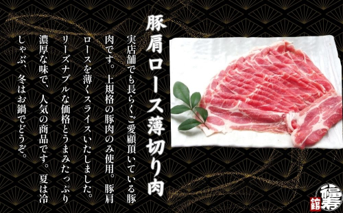 実店舗でも長らくご愛顧頂いている豚肉です。上規格の豚肉のみ使用。豚肩ロースを薄くスライスいたしました。