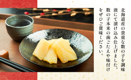 北海道産の貴重な数の子を調味液にて漬け込み仕上げました。