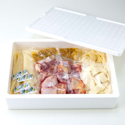 【上田商店】鶏鍋スープ600g×2pc、やせうま風平麺200g×2pc、ありた鶏骨付きモモ170g×2pc、ありた鶏モモ140g×2pc、ありた鶏つみれ100g×2pc、柚子こしょう2g×4pc