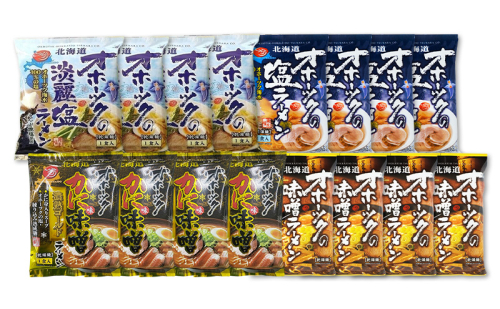 - 定期便3ヵ月 オホーツクの塩ラーメン オホーツクの淡麗塩ラーメン オホーツクの味噌ラーメン オホーツクかに味味噌濃熟ゴールドラーメン 各4袋 [ラーメン 麺類 塩味 味噌味 乾燥麺 つらら ]