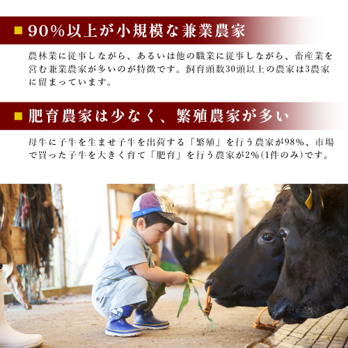 椎葉牛を含む牛の肥育農家は村内に「1軒のみ」です。非常に希少なブランド【椎葉牛】。