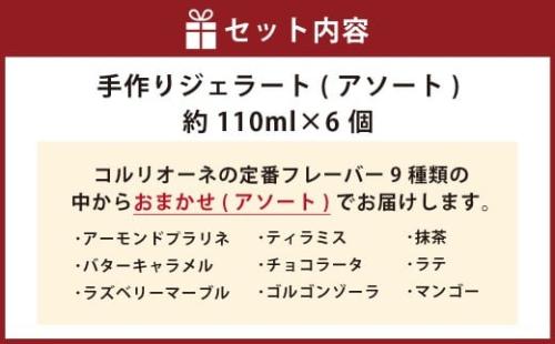 手作りジェラート 6個セット(アソート) 各110ml×6個 おまかせ 6個 フレーバー アーモンドプラリネ 抹茶 バターキャラメル ラテ ラズベリー マーブル チョコラータ ティラミス ゴルゴンゾーラ マンゴー 静岡県 菊川市