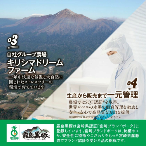 宮崎県のブランドポーク「霧島黒豚」は、黒豚専用飼料を給餌し、黒豚特有の「甘味のある旨さ」が特長の豚肉です。
