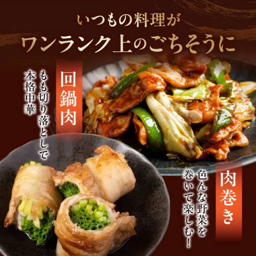「霧島黒豚」の中でも歯切れが良く赤身の多いモモ肉を、切り落としにスライスしました。必要な時に必要な分だけ調理できる200gずつの小分け真空パックをご用意しました。さっと炒めるだけの料理から時間をかけてじっくり煮込む料理まで、幅広いメニューに活躍します。和洋中問わず、様々な料理のメイン食材として重宝します。