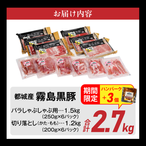 家計応援キャンペーン!霧島黒豚バラしゃぶ&切り落とし2.7kgセット+ハンバーグ≪みやこんじょ特急便≫_AC-2804-Q-CP