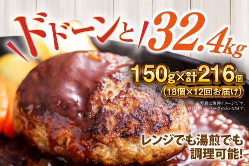 ハンバーグ 温めるだけ レンジ 湯煎 レトルト デミグラス 150g 18個 12回 定期便 総計32.4kg 小分け 個包装 [大黒物産 福岡県 宇美町 um40bak830023] 湯せん 冷凍 レンチン 温める大容量 はんばーぐ hannba-gu 人気
