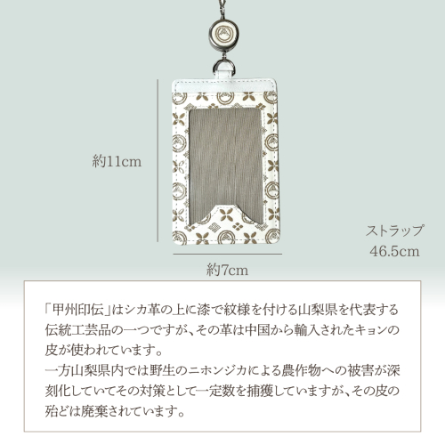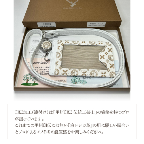 白い甲州印伝「URUSHINASHIKA」パスケース(リール付き) FCR006 2318390 - 山梨県富士河口湖町