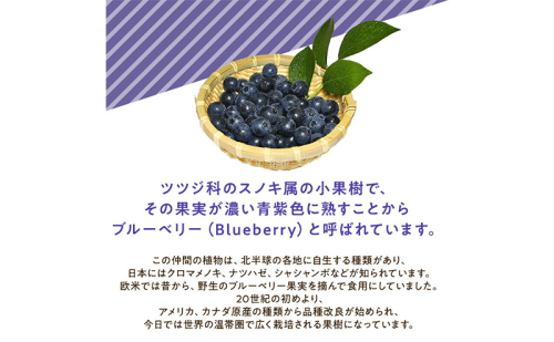 欧米では昔から、野生のブルーベリー果実を摘んで食用にしていました。 20世紀の初めより、アメリカ、カナダ原産の種類から品種改良が始められ、今日では世界の温帯圏で広く栽培される果樹になっています。