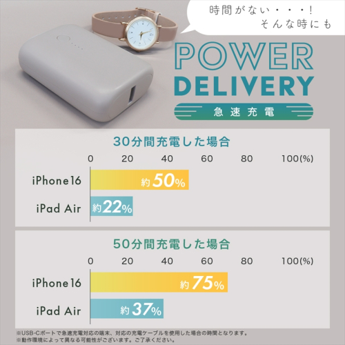 対応機種なら50分で80%の充電が出来るので、短時間しか充電が出来ない時や急なお出掛け時にも安心です。
