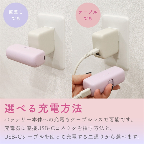 MOTTERU(モッテル) ダイレクトモバイルバッテリー 5,000mAh PD20W対応 USB-Cコネクタ 2台同時充電 PSE適合製品 2年保証(MOT-MB5002) コットンキャンディ【 神奈川県 海老名市 】