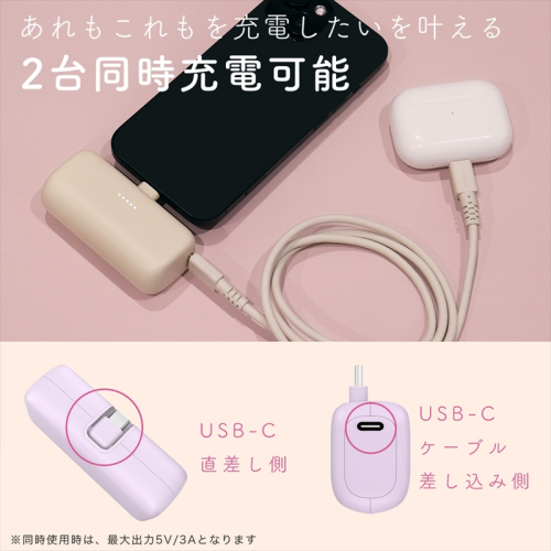 MOTTERU(モッテル) ダイレクトモバイルバッテリー 5,000mAh PD20W対応 USB-Cコネクタ 2台同時充電 PSE適合製品 2年保証(MOT-MB5002) ピーチスフレ【 神奈川県 海老名市 】