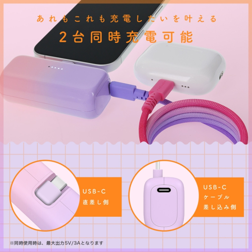 ※モバイルバッテリー本体を充電する際にはPD20W以上の充電器をご使用ください。