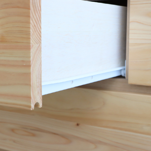 天然のヒノキのぬくもりを感じる、シンプルでかわいらしいデザインのチェストです。40cm、75cm、110cmの3サイズをご用意し、お部屋のスペースや用途に合わせてお選びいただけます。