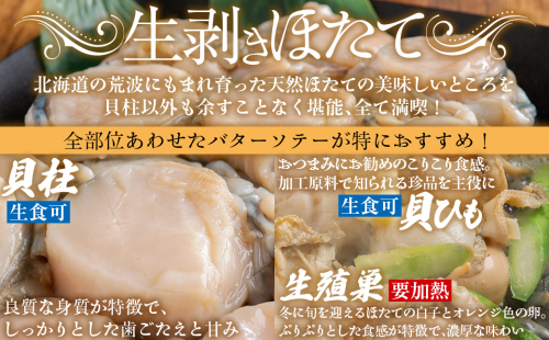 北海道のほたて(貝柱・貝ひも・生殖巣)を余すことなく、すべて満喫していただける逸品となっております。