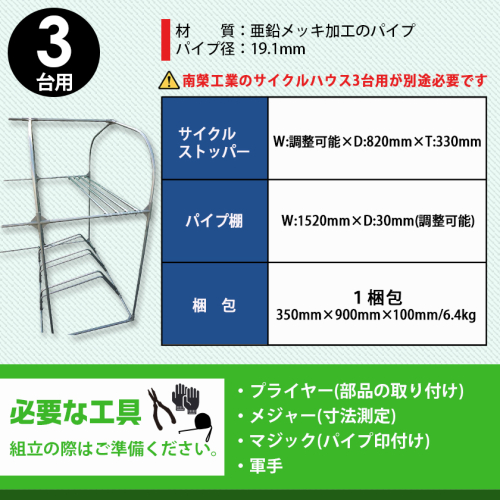 ※南榮工業のサイクルハウス3台用が別途必要です。