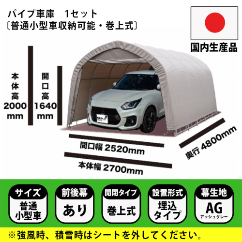 - パイプ車庫【巻上式】〈678M-AG〉普通小型車用/アッシュグレー_117-J401