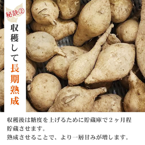 大島の段々畑という過酷な自然環境で育ち、その地でしか出せないとされる、濃厚でしっとりとした甘みが特徴。