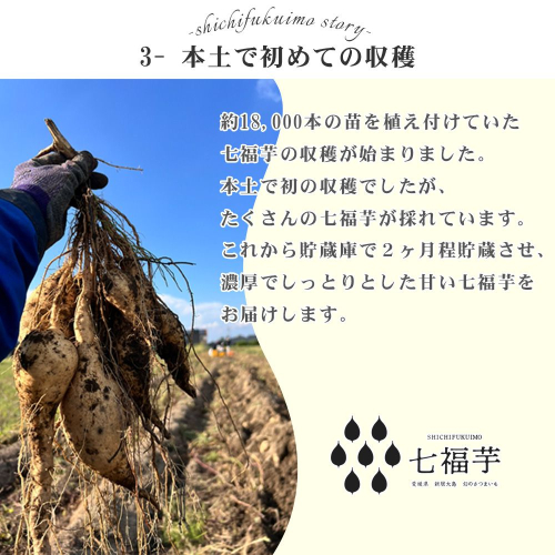 そんな新居大島原産の七福芋(白いも)を、もっと多くの皆様にお届けしたいという思いから、今年初めて自然環境が新居大島対岸の本土での栽培に挑戦しました!