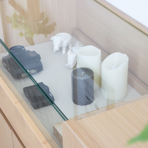 コレクションを美しく飾るガラスケースが魅力のキャビネットです。
