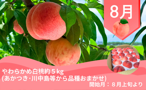 【8月~9月】やわらかめ白桃約5kg(あかつき・川中島・ゆうぞら等から品種おまかせ)15~20玉 秀品 8月10日~9月10日 冷蔵