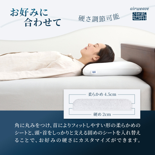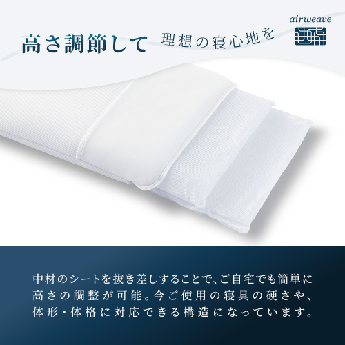 硬さ・厚さの異なるシート状のエアファイバーが2枚入っているので、寝心地に合わせて高さを調整しお使いいただけます。