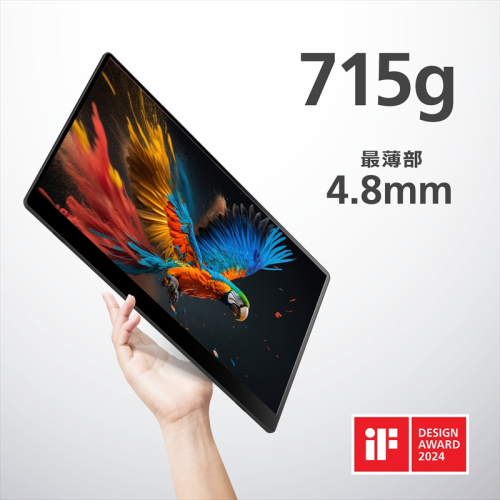 Usability 使いやすい:本体一体型のスタンドで設置角度(無段階:16~75°)を自在に調整でき、スペースに応じた最適な角度で設置できます。USB Type-Cケーブル1本で投影/給電ができ、PCやスマートフォン画面の拡張複製をして作業が可能です。薄型のため、スペースが限られた場所でも邪魔になりません。
