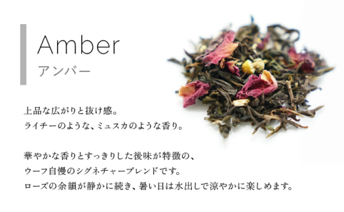 ミルクティー向けのマタン。ウーフのスペシャリテ、アンバー。スッキリとした味わいのペパーミントティー。食事のお供にもおすすめのソレイユ。