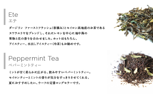 甘みのあるダージリンに、柑橘とバニラの香りをブレンド。他にない香りと深い味わいがあります。ホットにも水出し冷茶にも。