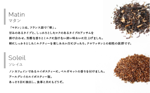 フランス語で「朝」という名のアッサムティーのブレンド。甘みのあるタイプのアッサムティーと、しっかりとこくのあるアッサムティーをブレンドしました。