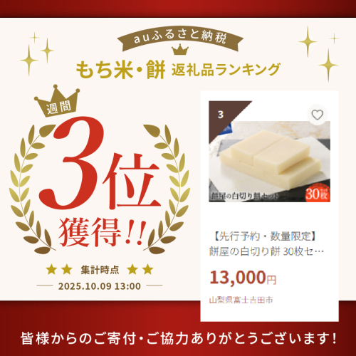 - 【先行予約・数量限定】餅屋の白切り餅 30枚セット【年内配送】