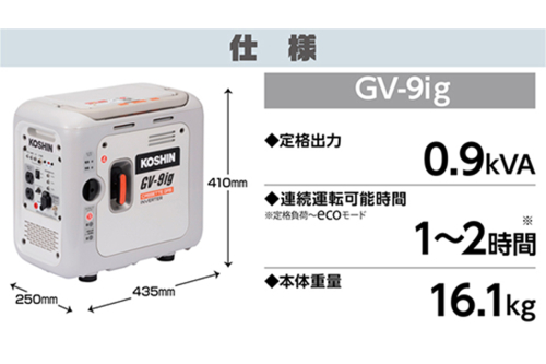 - カセットガス式インバーター発電機 GV-9ig [1604]