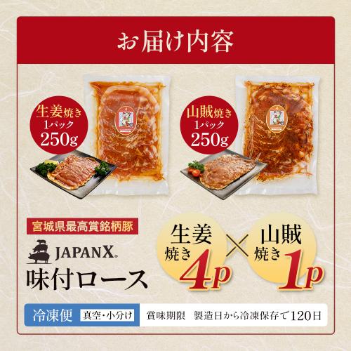 JAPAN X 味付ロース5点セット 生姜焼き4パック・山賊焼き1パック 豚肉 豚 ブランド豚 小分け ロース 豚ロース 味付 時短 生姜焼き 山賊焼き ジャパンエックス 蔵王 人気 【04301-0883-2】