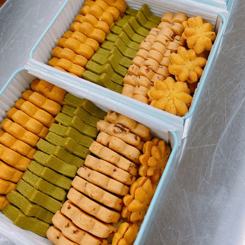 1枚ずつ絞ったり、型抜きしたり、温度を変え、焼き時間を変えながらお作りしています。