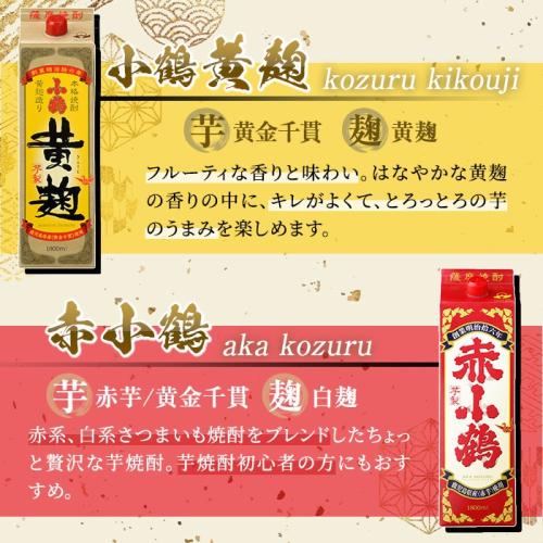 - No.052 小鶴ブランド飲み比べ1升パック6本セット(1800ml×6本) 酒 焼酎 鹿児島 さつま芋 芋焼酎 米麹 小鶴 麹 セット 1升 一升 紙パック 飲み比べ パック 常温【小正醸造】
