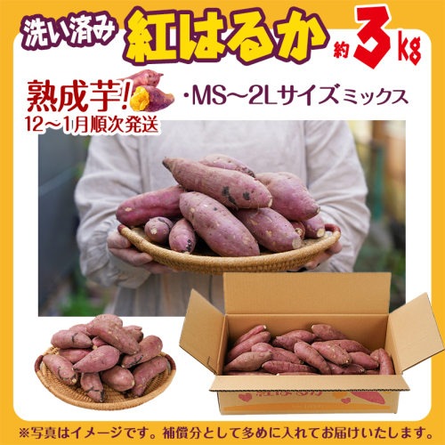 - 【熟成芋】芋名人が認めるさつまいも『洗い済み 紅はるか』3kg MS~2Lミックス ※12月~1月頃順次発送_LD-L704-J