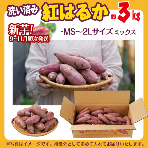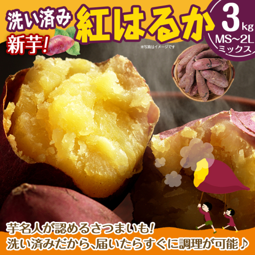 【新芋】芋名人が認めるさつまいも『洗い済み 紅はるか』3kg MS~2Lミックス ※9月~11月頃順次発送_LD-L704-N
