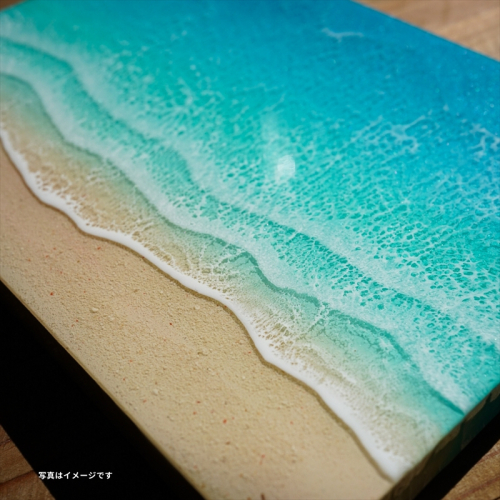 こちらは茨城県日立市のアトリエで制作する、ALOHA GLASSの波レジンアートパネル(A4サイズ)です。