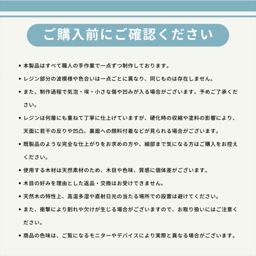※天然木とレジンを使用した手作り品のため、木目や色合い、波模様は一点ごとに異なります。画像はイメージです。