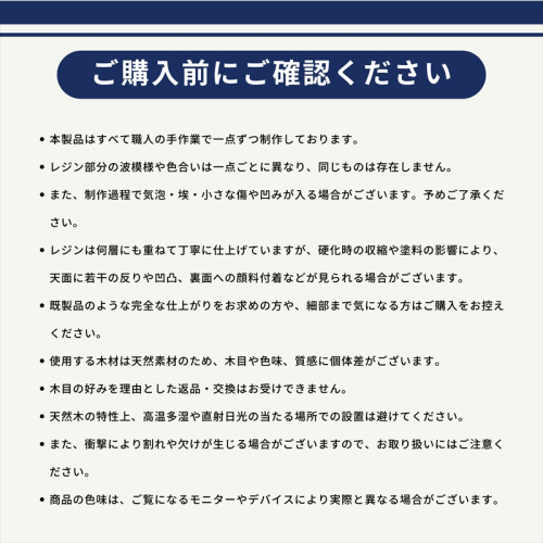 ※天然木とレジンを使用した手作り品のため、木目や色合い、波模様は一点ごとに異なります。画像はイメージです。