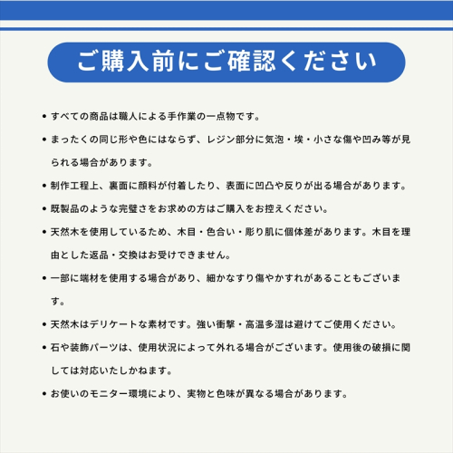 ※天然木とレジンを使用した手作り品のため、木目や色合い、波模様は一点ごとに異なります。画像はイメージです。