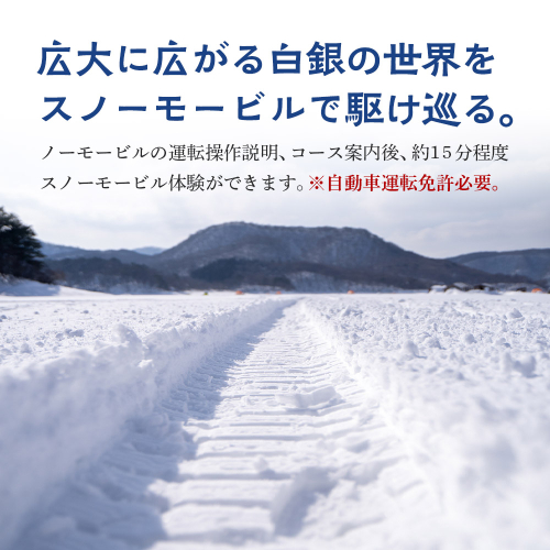 スノーモービルの運転操作説明、コース案内後、約15分程度スノーモービル体験ができます。