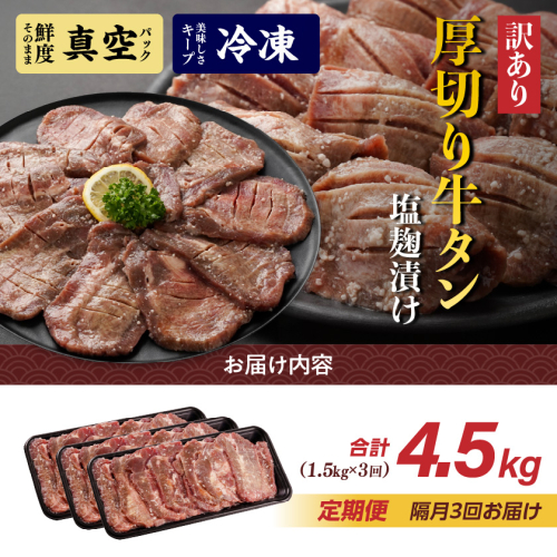 隔月3回お届け!《訳あり》厚切り牛タン塩麹漬け定期便(1.5kg×3回)_T57-3-3301