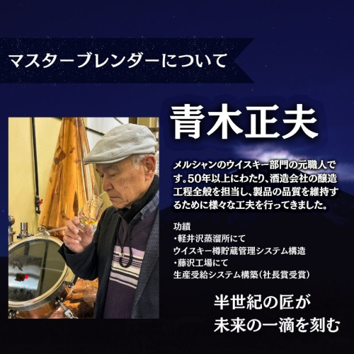軽井沢蒸溜所元職人の手を組んで、厳選された原酒をバランスよくブレンドしたウイスキーです。